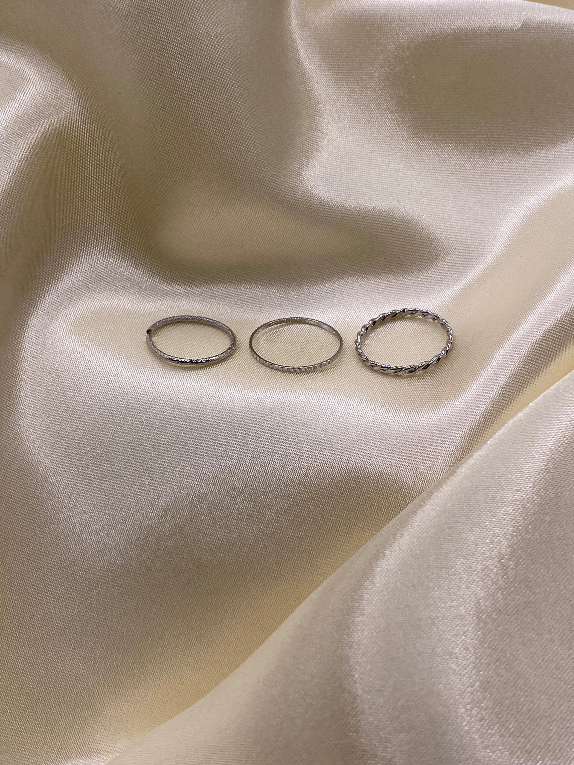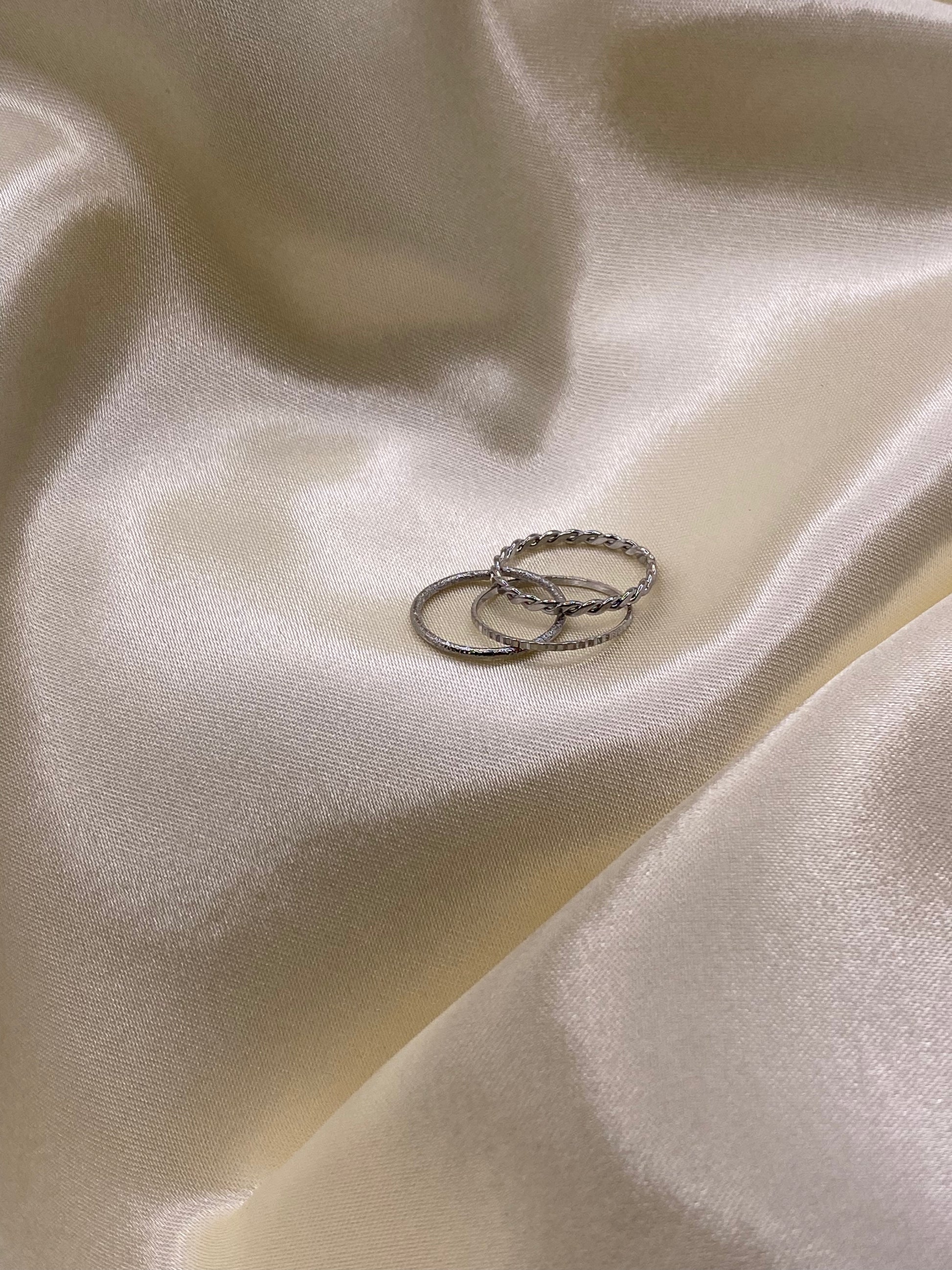 L’ensemble bagues Rita est parfait pour vous accompagner partout où vous allez. De couleur argenté, ses trois anneaux sont élégants et discrets par leur finesse. Selon vos goûts et vos envies, vous pouvez porter les bagues Rita sur un ou plusieurs doigts!