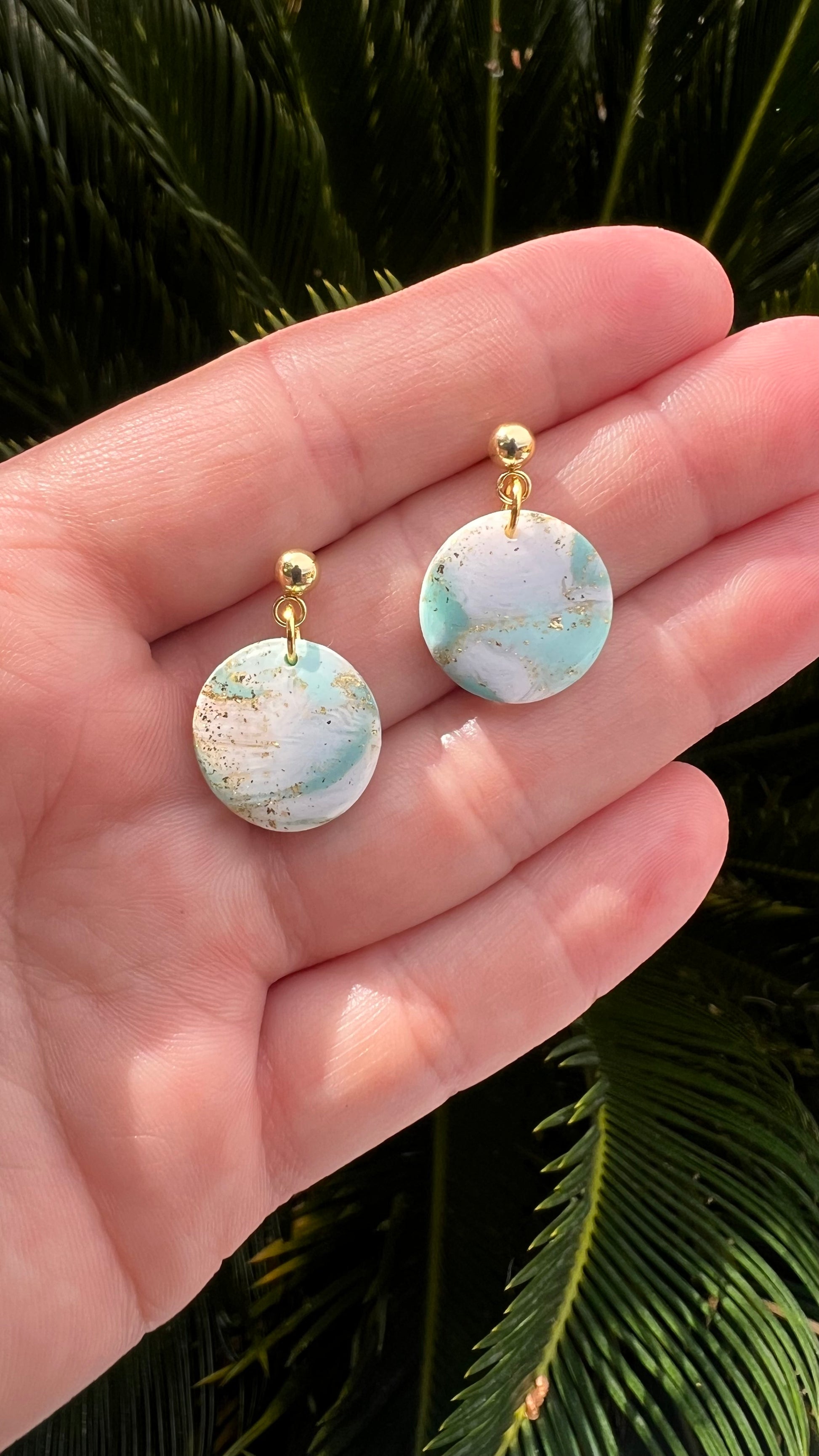 Les boucles d'oreilles Pearl sont uniques et élégantes. Fabriquées à la main avec de la pâte polymère, elles offrent des nuances de bleu inspirées de l'océan. Ajoutez une touche de fraîcheur et de sophistication à votre tenue avec ces boucles d'oreilles.