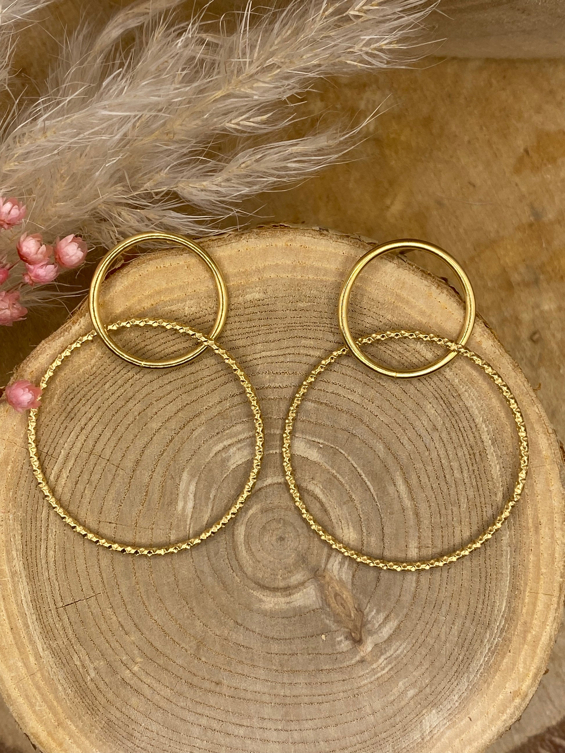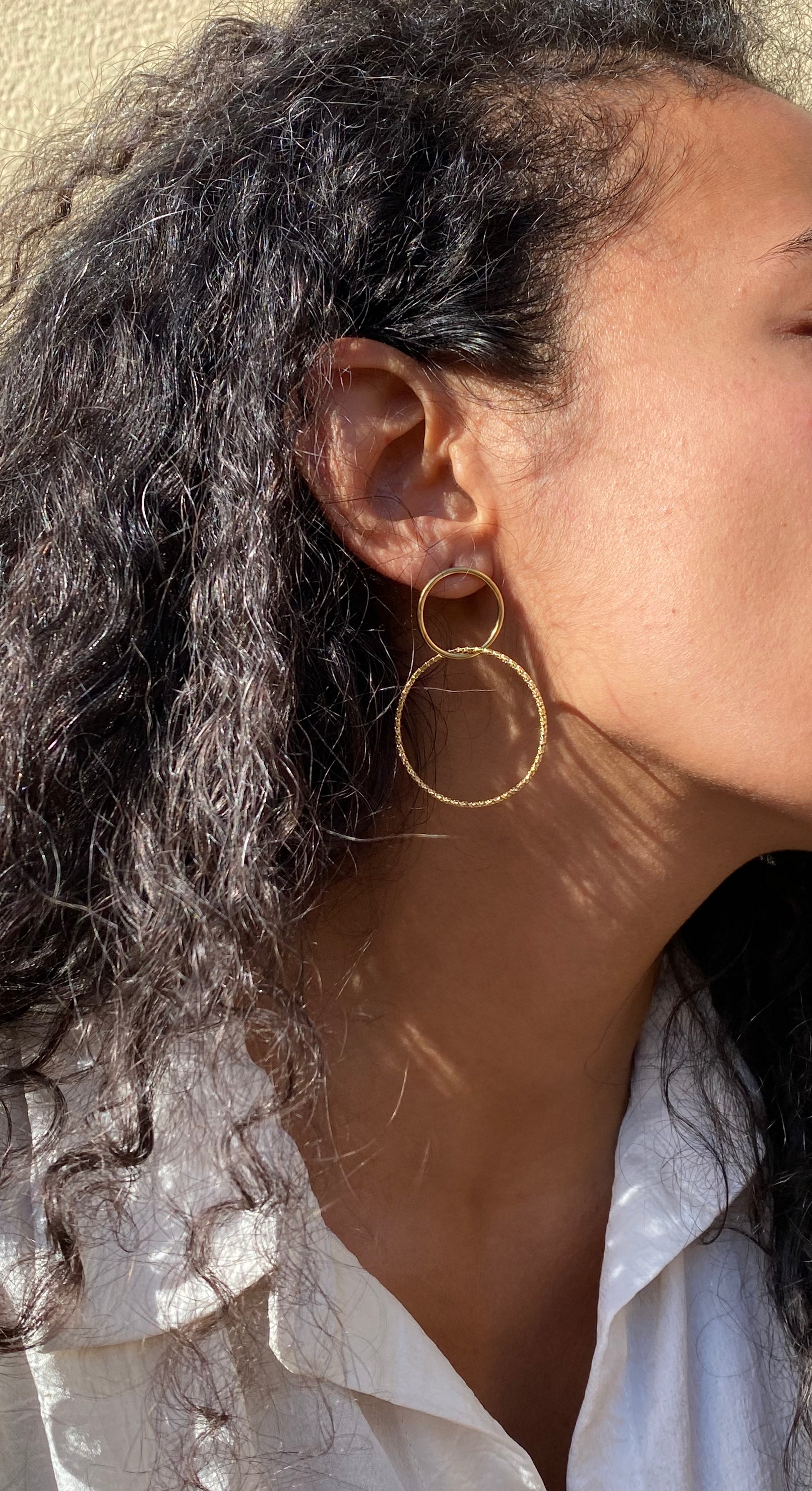 Les boucles d'oreilles Tao sont faites avec des créoles double anneaux qui attirent les regards. Elles sont une parfaite addition à votre style.
