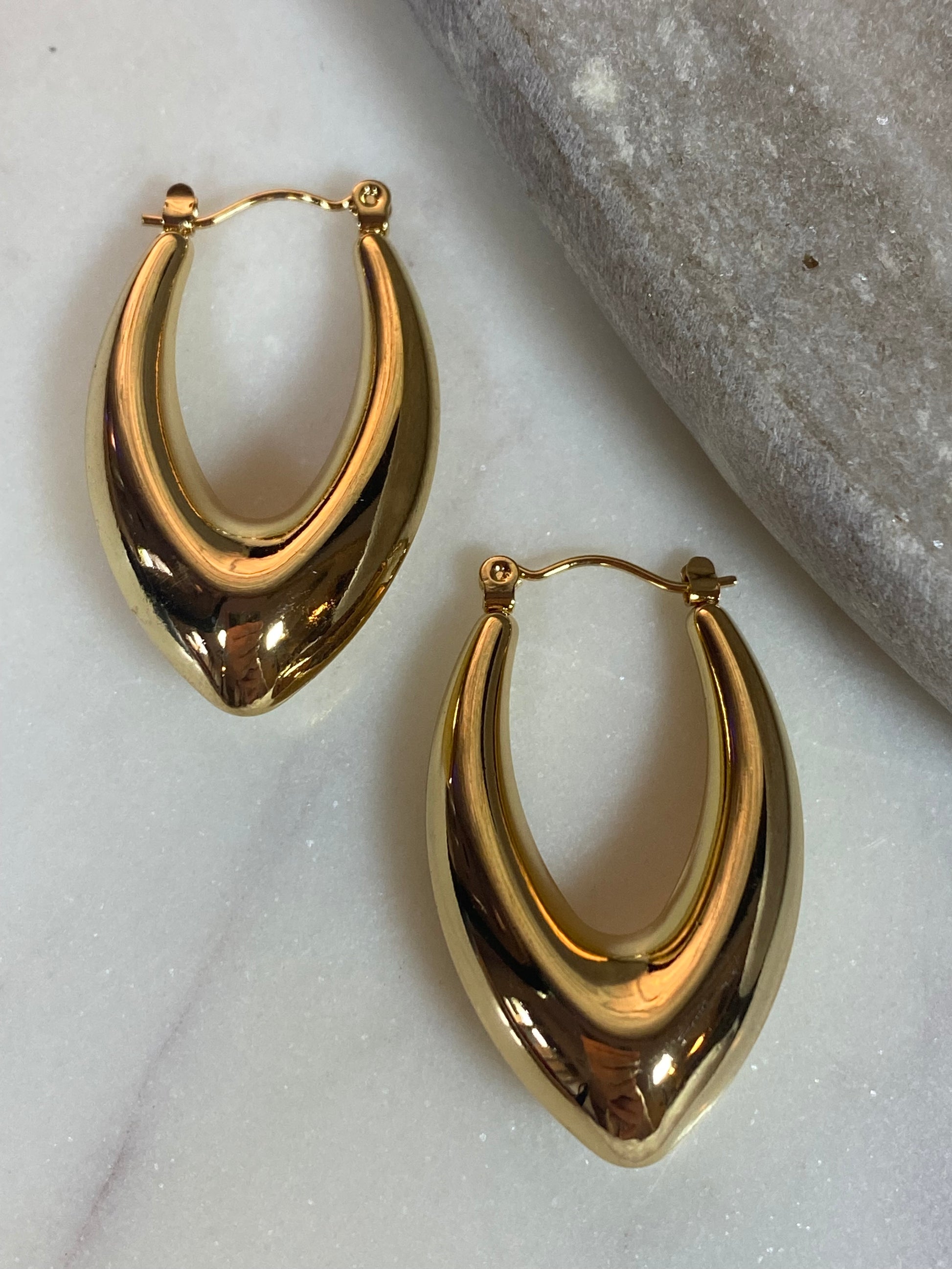 Sublimez votre tenue avec les boucles d'oreilles Lena en acier inoxydable, élégantes et raffinées avec leurs créoles en pointe. Le parfait accessoire pour une touche de sophistication.