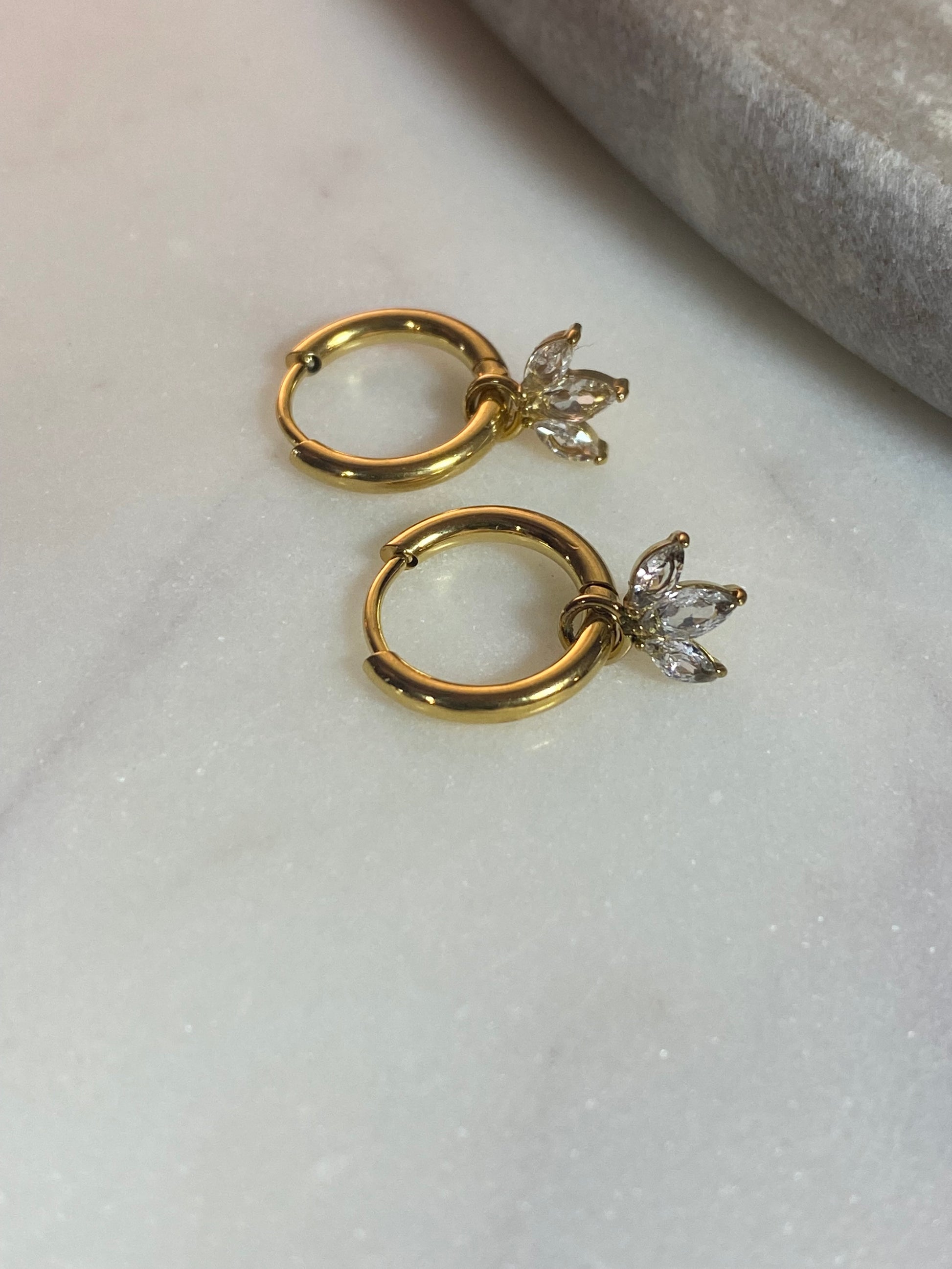 Les boucles d'oreilles Nara sont une touche d'éclat et de modernité à votre garde-robe. Fabriquées en acier inoxydable, ces créoles sont ornées d'un pendentif étincelant en strass qui ajoutera une touche de glamour à n'importe quelle tenue. Des bijoux de qualité qui allient style et élégance.