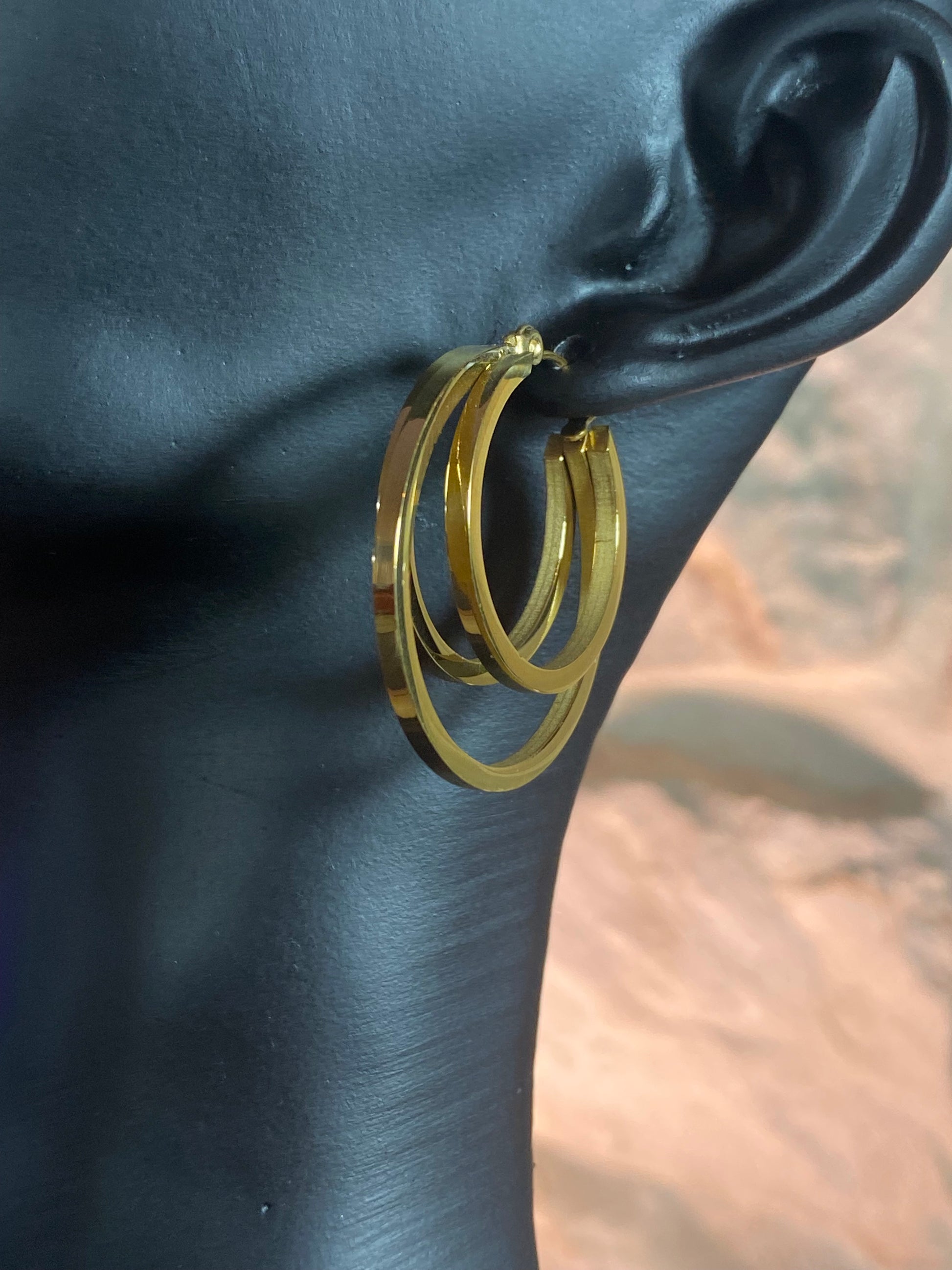 Découvrez les boucles d'oreilles Zeya. Ces 3 créoles en acier inoxydable doré sont l'accessoire parfait pour toutes les occasions. Leur matériau résistant et leur design élégant ajouteront une touche de glamour à votre look. Optez pour la qualité et le style avec les boucles d'oreilles Zeya.
