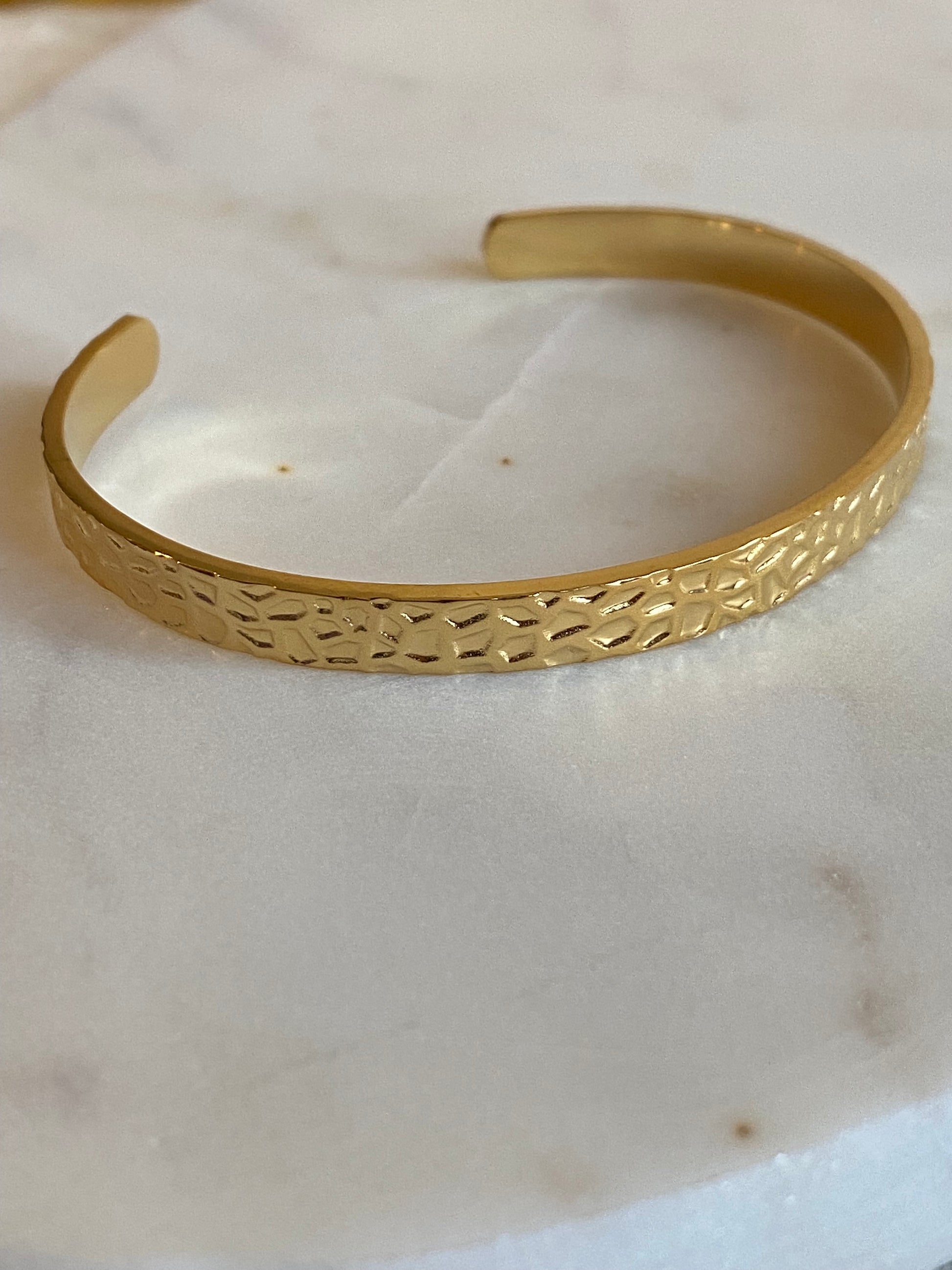 Le bracelet Sao est un accessoire élégant et moderne pour toutes occasions. Fabriqué en acier inoxydable doré, il est résistant et durable. Avec son design jonc, ce bracelet apporte une touche sophistiquée à votre tenue.
