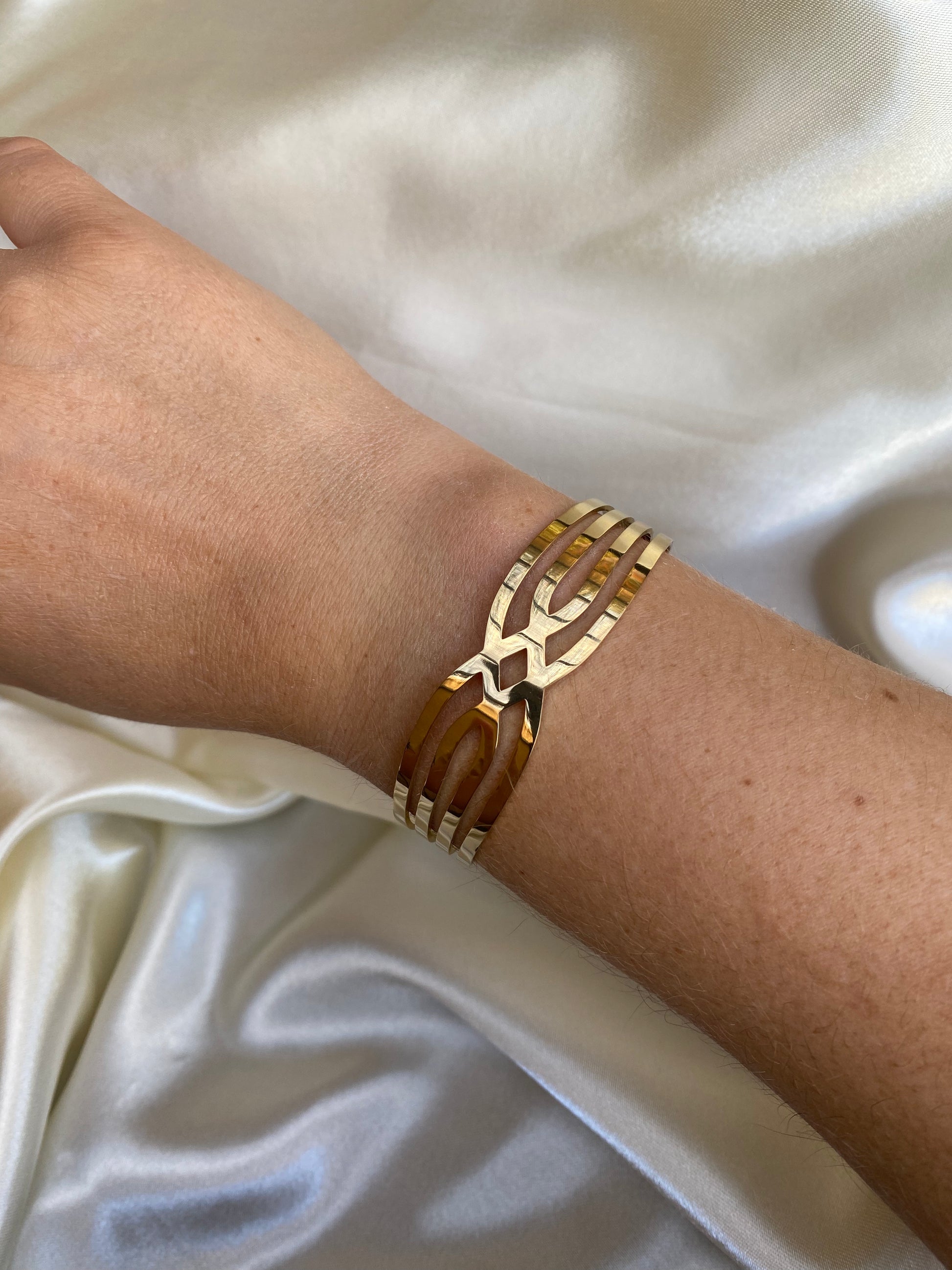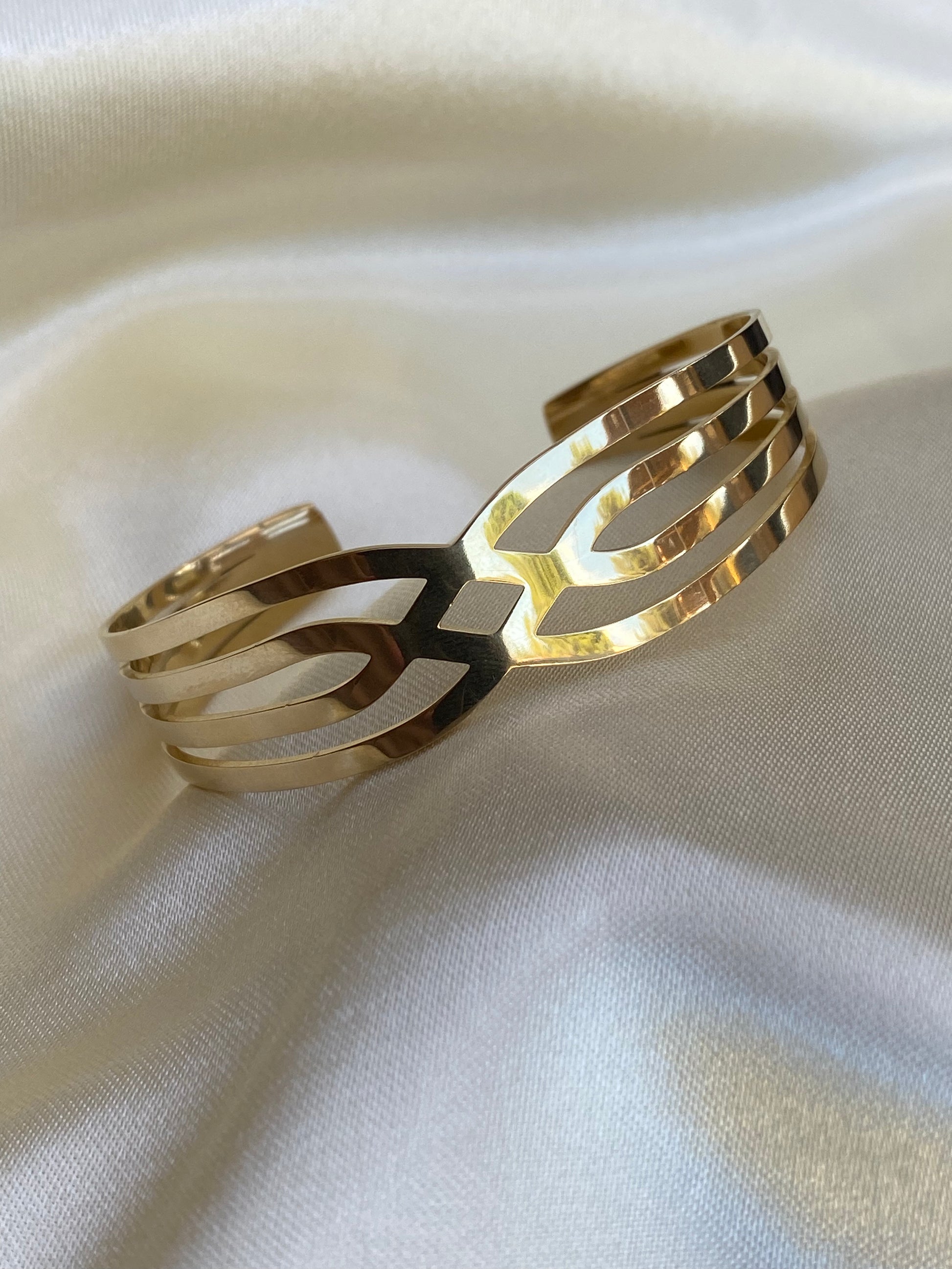Ayez le style chic et intemporel avec notre bracelet Moorea doré. Contemplez son élégance à travers ses lignes entrecroisées qui illumineront votre poignet avec charme! Capturez le soleil avec ce bijou unique et saisissez chaque occasion de mettre en valeur votre style!
