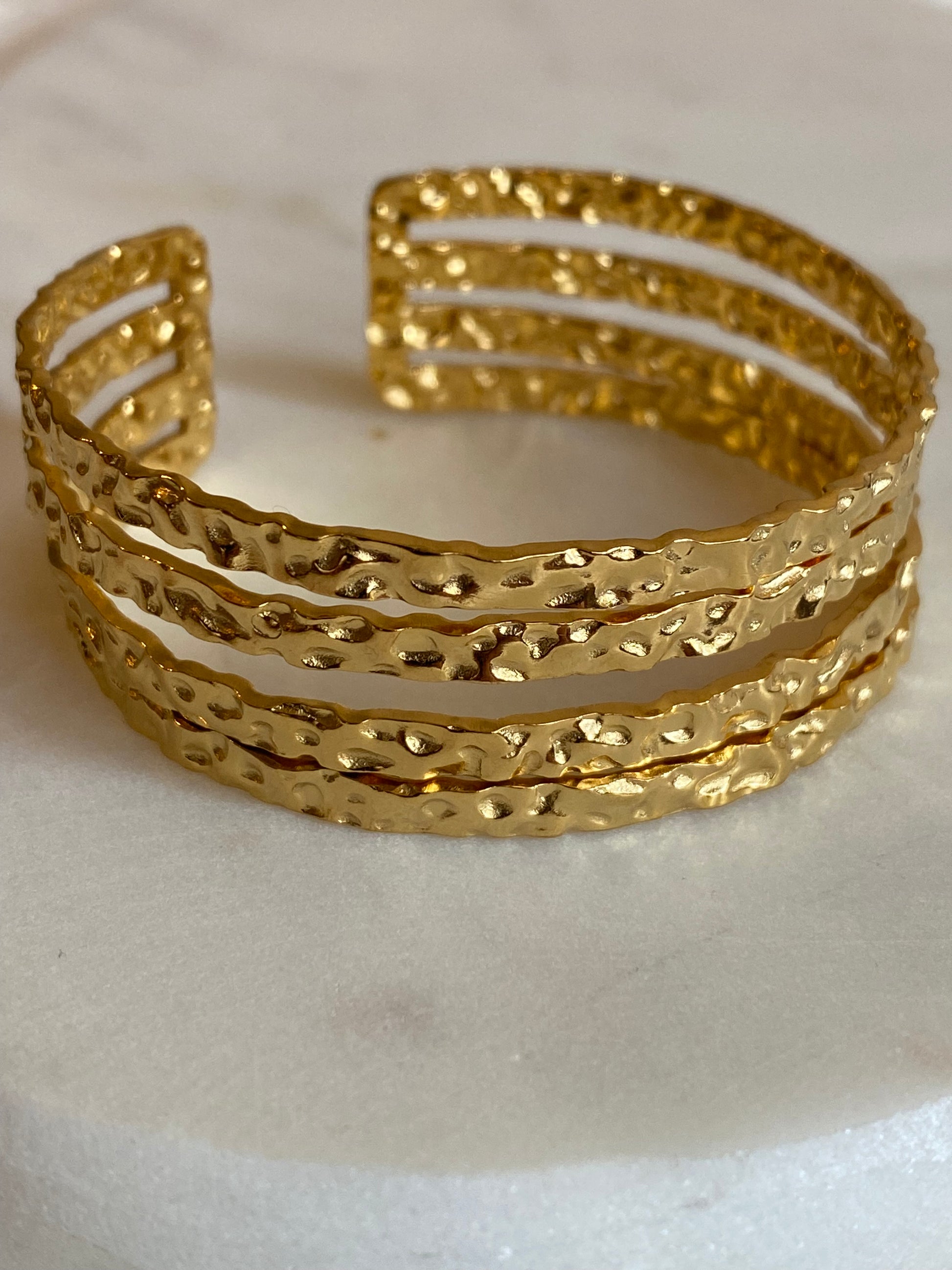 Le jonc Nilo en acier inoxydable doré apportera une touche de glamour à toutes vos tenues. Fabriqué avec des matériaux de qualité, il ajoutera une allure chic et éclatante à votre poignet. Son design élégant et moderne en fait un accessoire versatile qui conviendra à tous les styles.