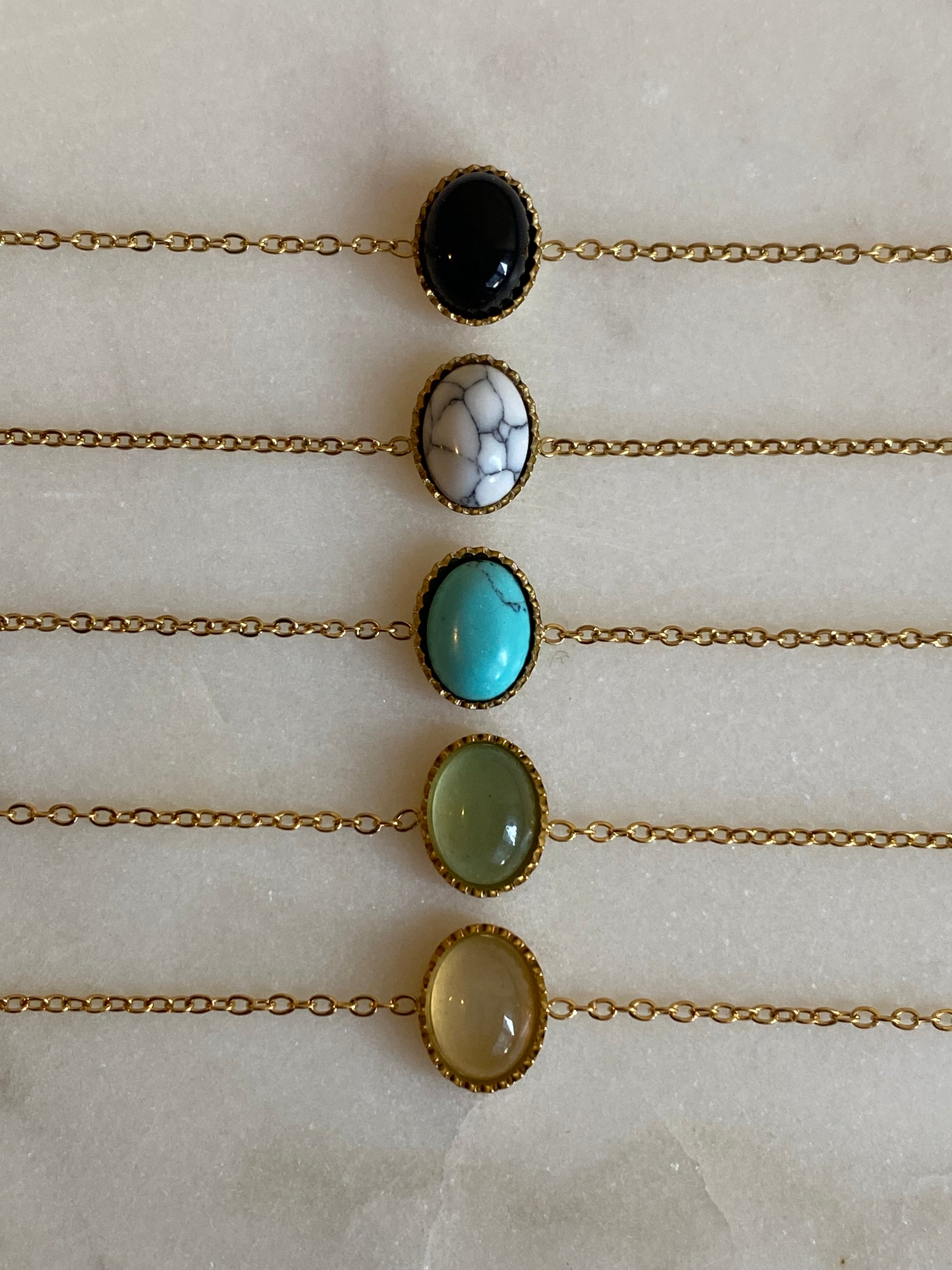 Le bracelet Océa est une pièce élégante et intemporelle qui ajoutera une touche de naturel à votre look. Sa chaine en acier inoxydable est ornée d'une magnifique pierre naturelle que vous pouvez choisir parmi 5 couleurs différentes. Profitez d'un style unique et d'une qualité durable avec ce bracelet.