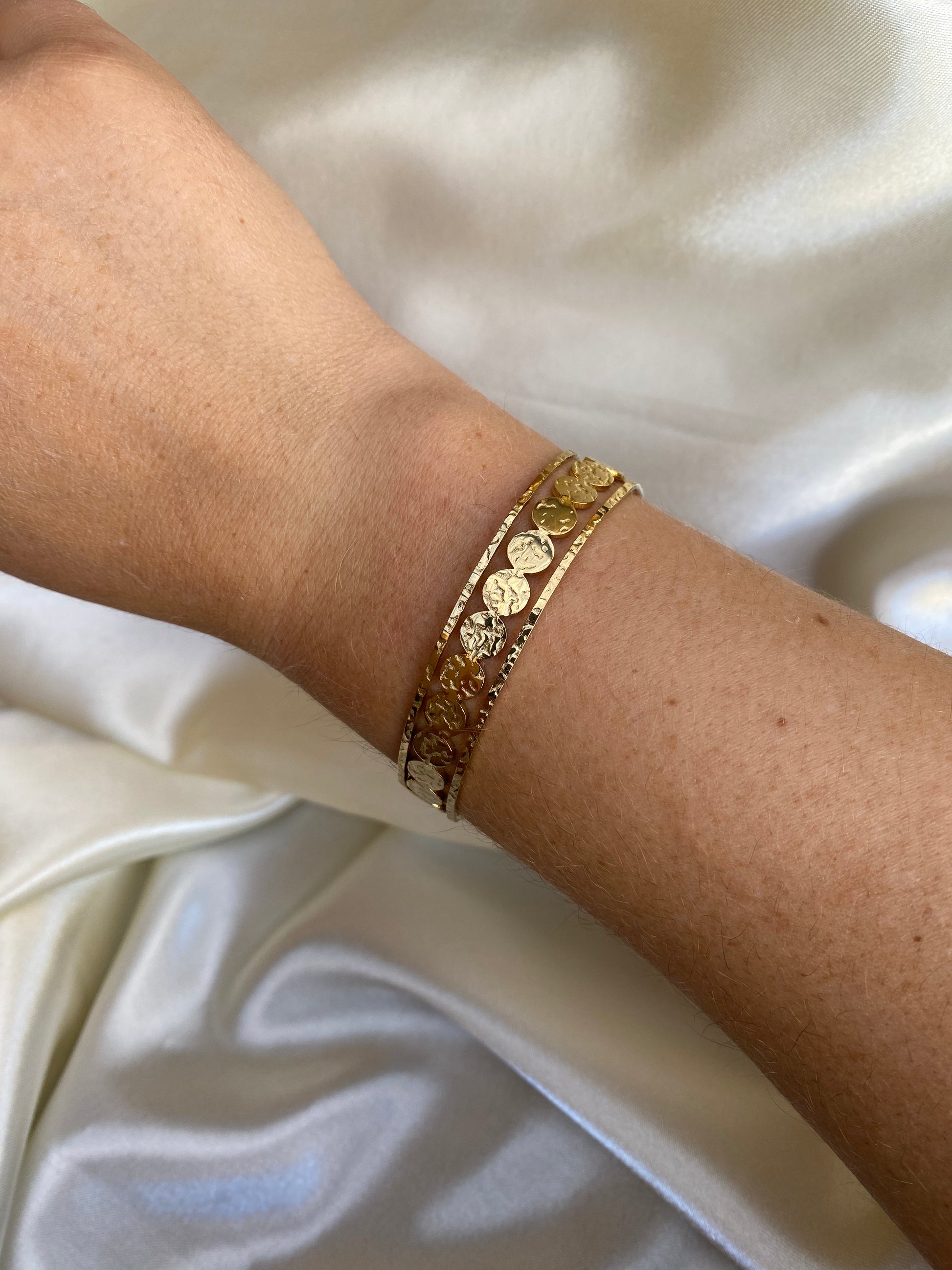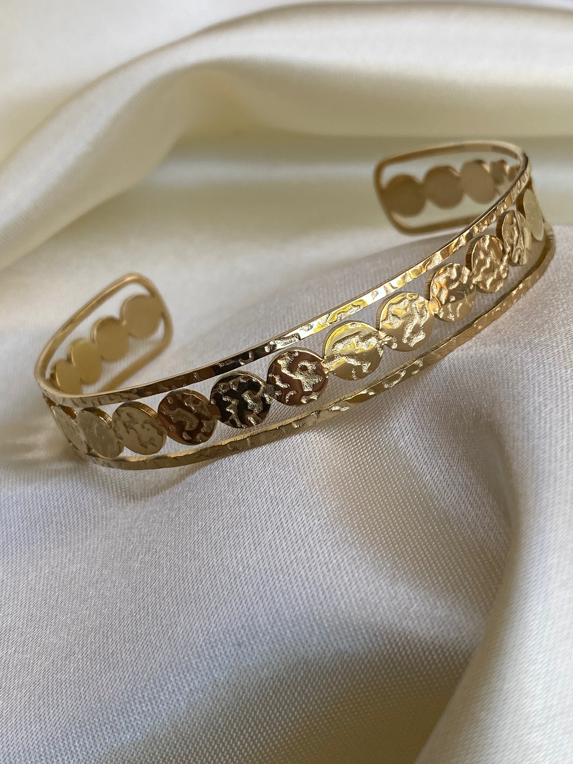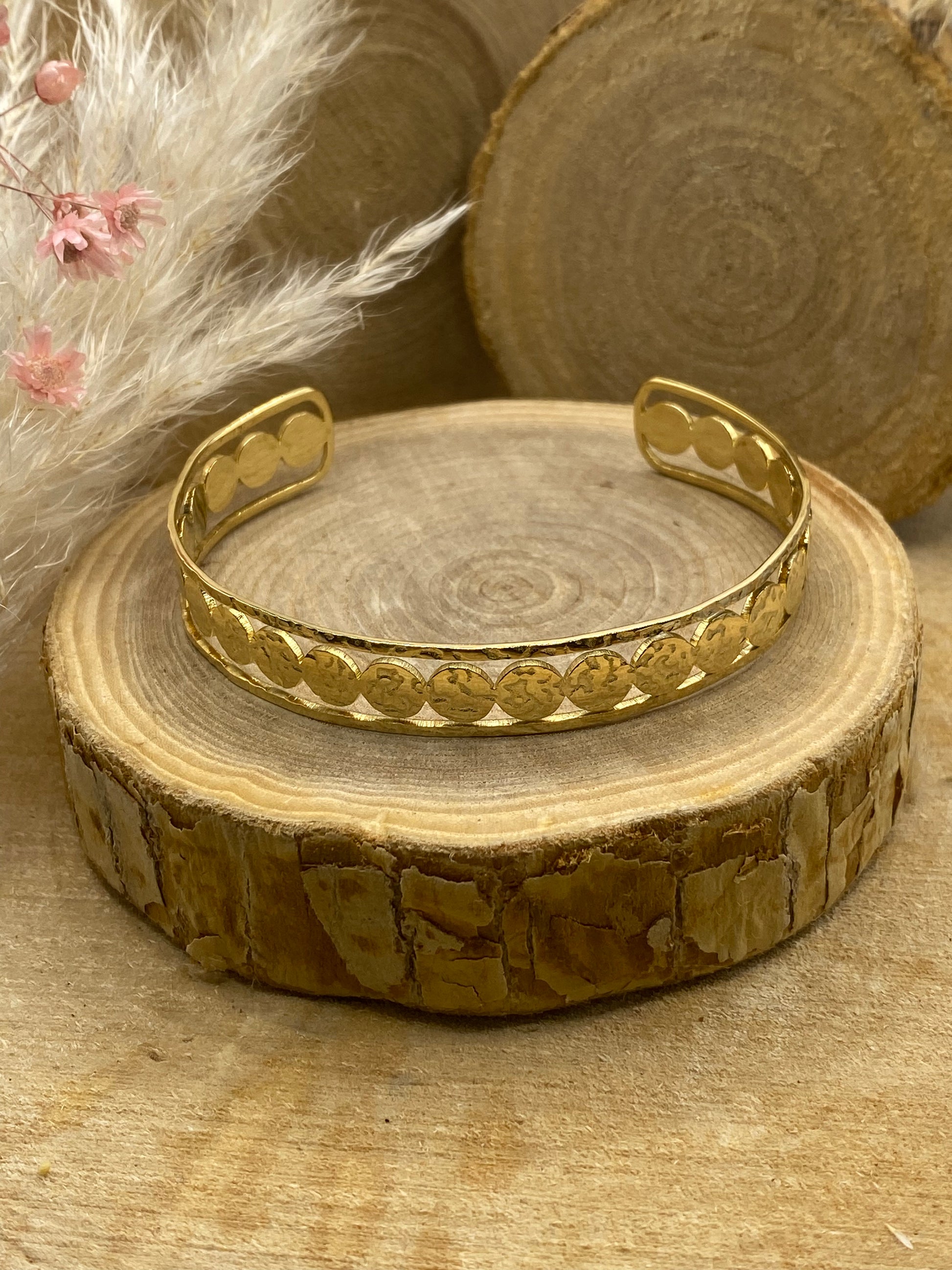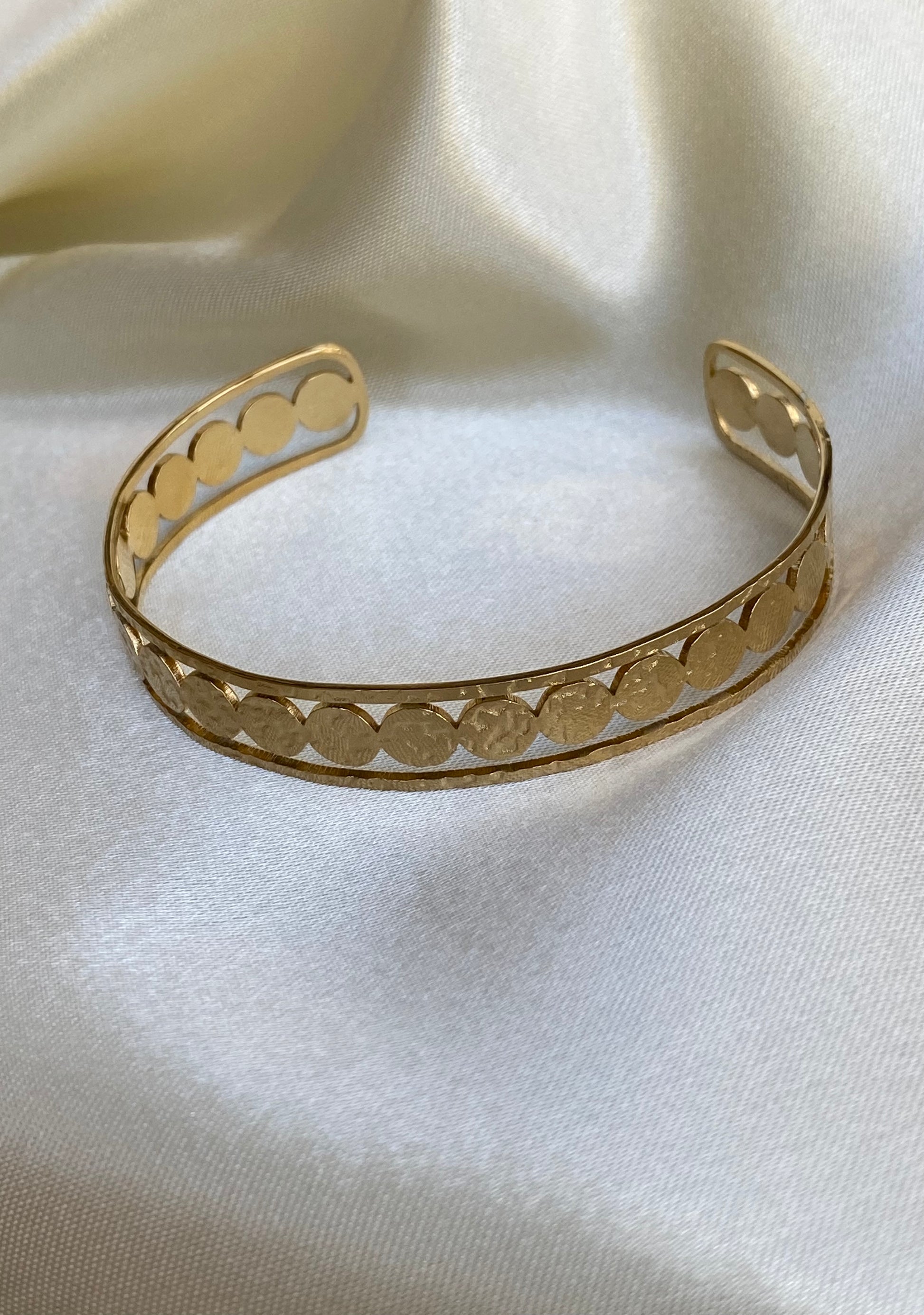 Découvrez le bracelet Roa, orné d'une ligne de ronds dorés qui apportent un style Grec intemporel à votre look. Ce bracelet à la fois fiable et élégant, s'accordera parfaitement à votre tenue, pour un look au charme raffiné.